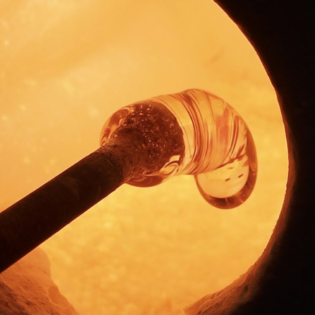 | 溶けたガラスを付けて頭を作ります ※難しい作業なのでスタッフが行います |