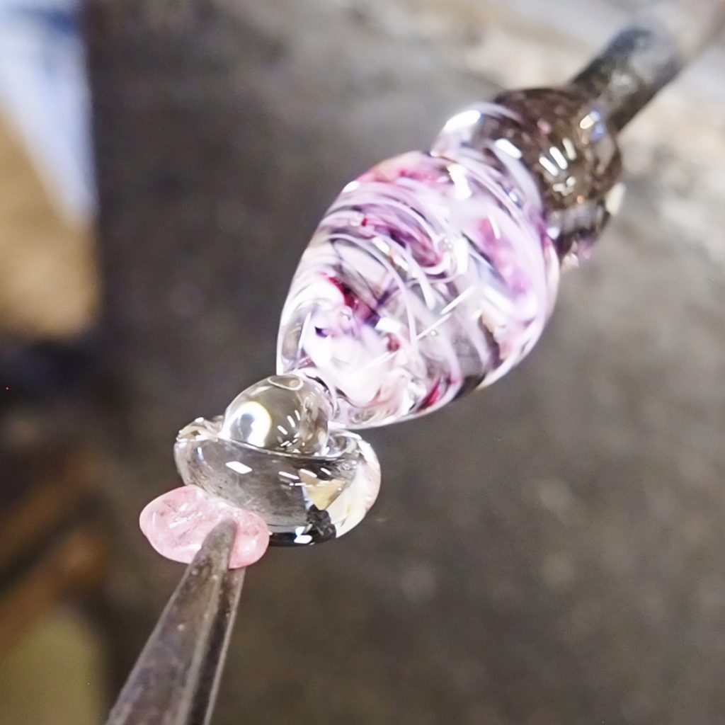 | 溶けたガラスを付けて飾りにします | ![]() |