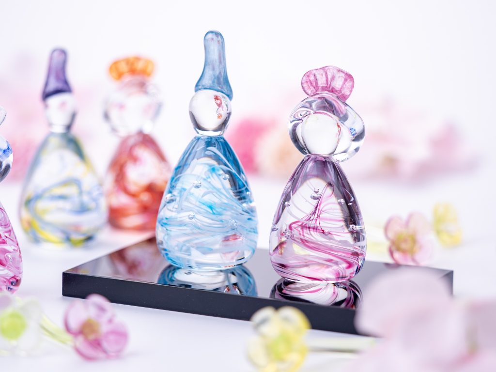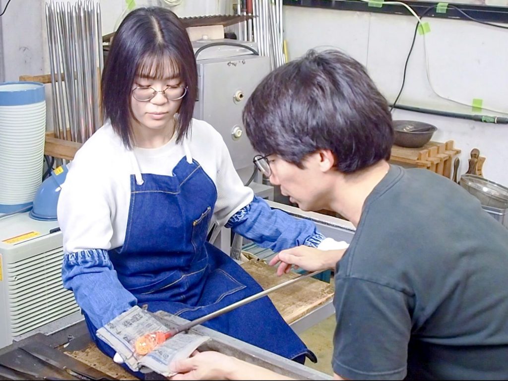 溶けたガラスでお内裏様、お雛様をひとつずつ制作します。
